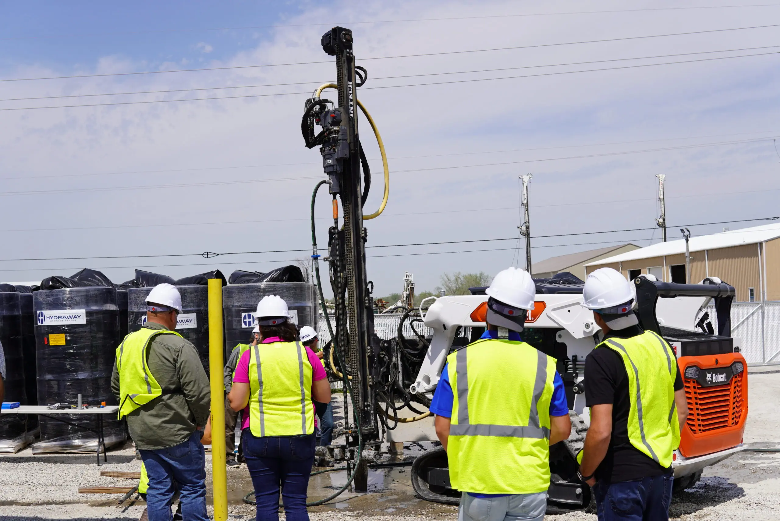 Experience the power and precision of a WORD Rock Drill, working alongside real construction equipment in a simulated job-site environment. - Seamless Coordination: ChemGrout Plant Operation & Drill Team Communication